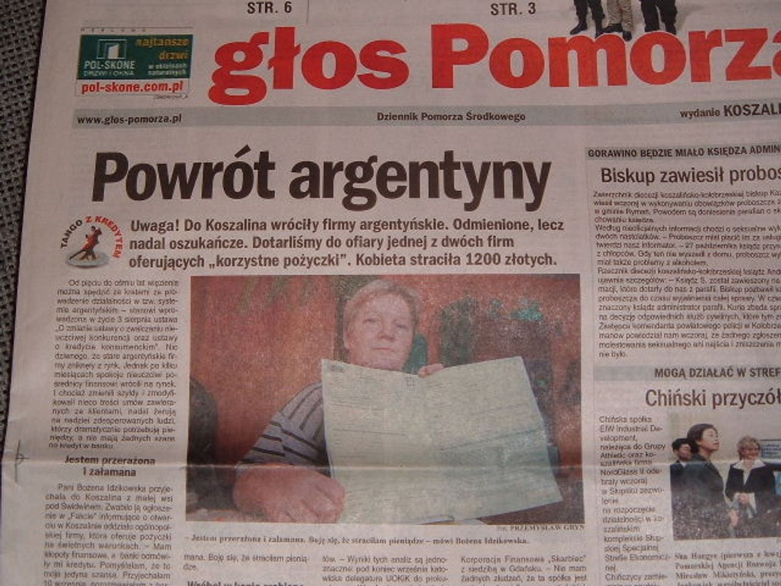 Do Koszalina wróciły firmy proponujące oszukańcze pożyczki w systemie argentyńskim - ostrzega dzisiejszy Głos Pomorza. Zgodnie z nowym prawem, firmy te nie powinny prowadzić takiej działalności. Jednak znalazły jakieś luki i usiłują odzyskać stracone pozycje. Wiele osób, w tym mieszkańców Szczecinka zostało oszukanych jeszcze pod rządami poprzedniej ustawy. Działania w ich imieniu podejmują Powiatowi Rzecznicy Konsumentów. Dziś przed szczecineckim Sądem Rejonowym miała rozpocząć się sprawa z powództwa Rzecznika przeciwko takiej firmie z Jaworzna. Sprawa się nie rozpoczęła, gdyż nie dojechał żaden przedstawiciel firmy. Powiatowy Rzecznik Konsumentów Kazimierz Czarnecki zapowiada, że będzie podejmował kolejne sprawy. Na spotkanie z rzecznikiem zapraszamy jutro, tj. w piątek, do programu Od piątku do piątku.